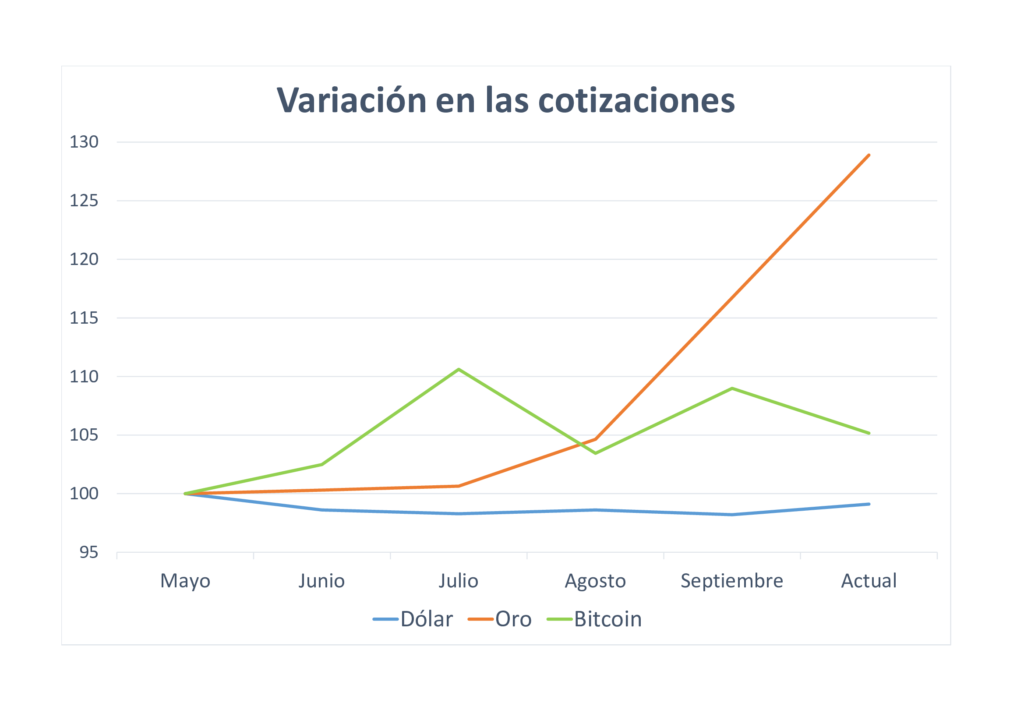 En las últimas semanas se sucedieron récords en la cotización del oro y el Bitcoin, en paralelo a una devaluación sostenida de la moneda estadounidense. Por su parte, la onza del metal viene superando récords de cotización llegando a negociarse en el mercado a 4.300 dólares. Dicho aumento marca un incremento del 17% en tán sólo el último mes.